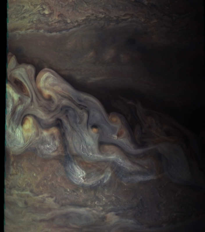 According to the Juno mission, these belts are believed to form due to the movement of ammonia gas, which follows a rhythmic up and down flow pattern.