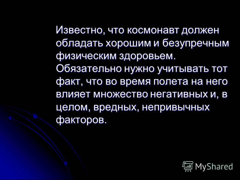 (11-13 slide) Following successful animal experiments, humans began to be trained for space travel in order to conduct flights into outer space. This led to the emergence of a new profession – astronaut. An astronaut is an individual who undertakes space flights and carries out in-flight testing and experimentation with space technology.