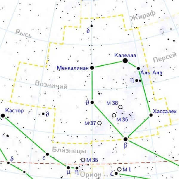 If you catch a glimpse of this heavenly configuration even once, then the query of which star shines the most in the constellation of Ascendant will be easily answered. Capella shines prominently among the other celestial “dots” above. It is recognized as the sixth most brilliant in the celestial sphere and can be easily spotted even under less than ideal observation circumstances.
