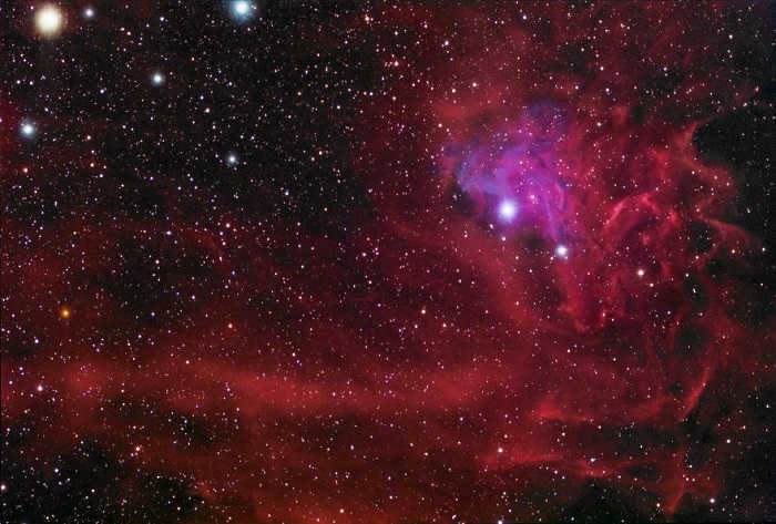 The Flaming Star Nebula (IC 405, SH 2-229, and Caldwell-31) is an emission/reflection nebula that surrounds the star AE of Ascendant.