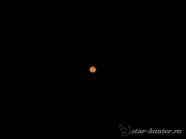 This hazy reddish spot represents Mars – this is the appearance it assumes when observed through an affordably priced telescope