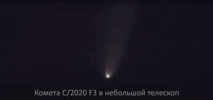 Here is an approximate representation of a brilliant comet seen through a telescope with a diameter of 130-150mm.