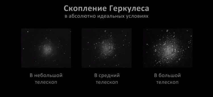 Observing the Hercules cluster through amateur telescopes of various price ranges reveals its appearance.