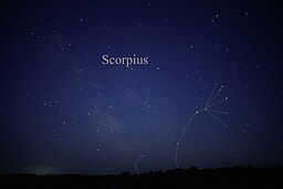 The Scorpius constellation can be observed with the naked eye, with its constellation lines drawn.
