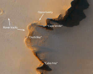 My proposal is for the most observant individuals to locate the Opportunity rover in the given image 😉