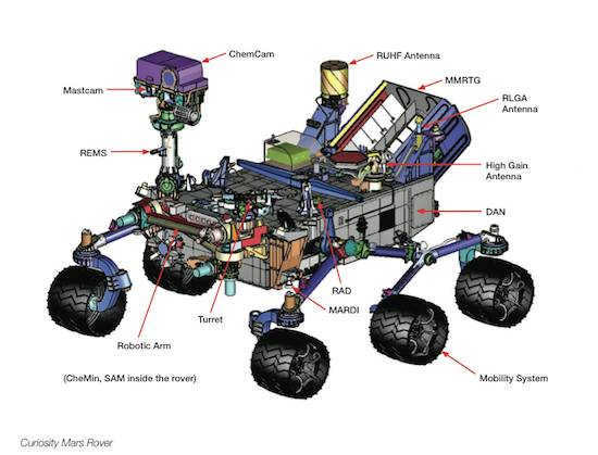 Curiosity has three antennas that can both receive and transmit information. These antennas are located on the “back” of the rover in different positions. They include a UHF antenna, an LGA, and an HGA.[1]