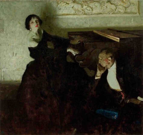 In a regular room with warm-colored interior and windows facing north, a similar effect of “warm shadows – cold light” can be observed. Warm shadows will be created by secondary light sources reflected from the walls, floor, and furniture, while the light coming from the north-facing window will have a bluish and cold tone. Swedish artist Anders Zorn painted his wife Emma under such circumstances: