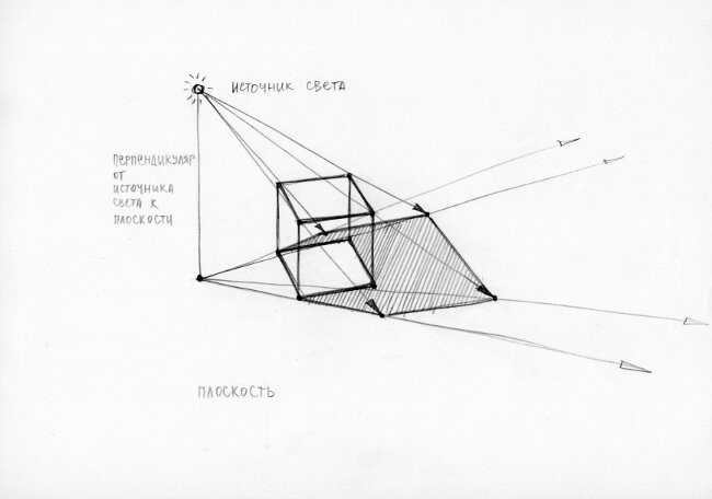 - Create a perpendicular line from the point of illumination to the surface where the object is situated.