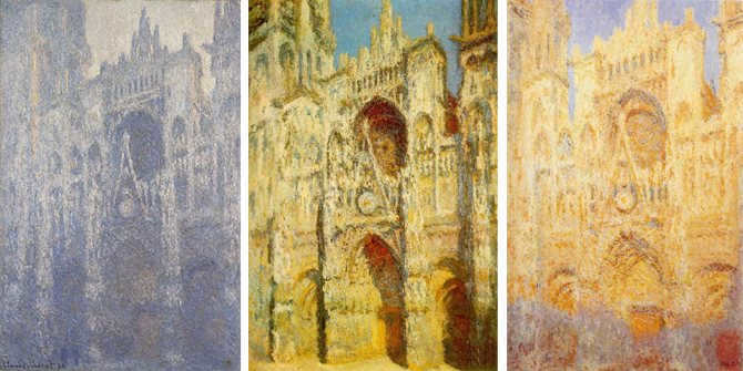 In a regular room with warm-colored interior and windows facing north, a similar effect of “warm shadows – cold light” can be observed. Warm shadows will be created by secondary light sources reflected from the walls, floor, and furniture, while the light coming from the north-facing window will have a bluish and cold tone. Swedish artist Anders Zorn painted his wife Emma under such circumstances: