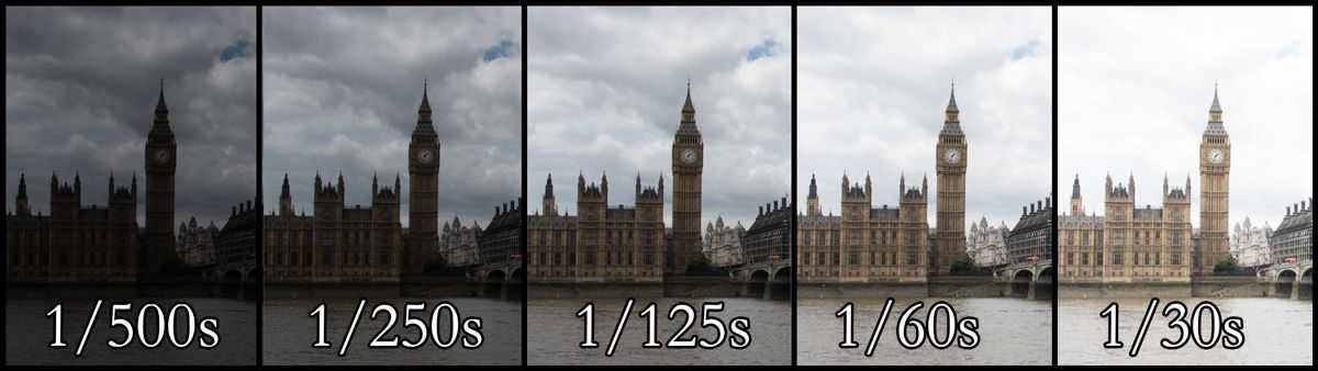 Doubling the shutter opening time changes it from 1/500 to 1/250 of a second. Another doubling results in a shutter speed of 1/125 of a second. This is equivalent to squaring the exponent. An exposure of 1/125 is two steps higher than 1/500, but it gathers four times as much light. Another doubling, leading to an exposure of 1/60 (approximately), corresponds to three steps higher but eight times as much light. It turns out that the right photo, compared to the left photo, receives an increase in light hitting equal to four exposure steps – in other words, the right photo receives 16 times more light than the left.